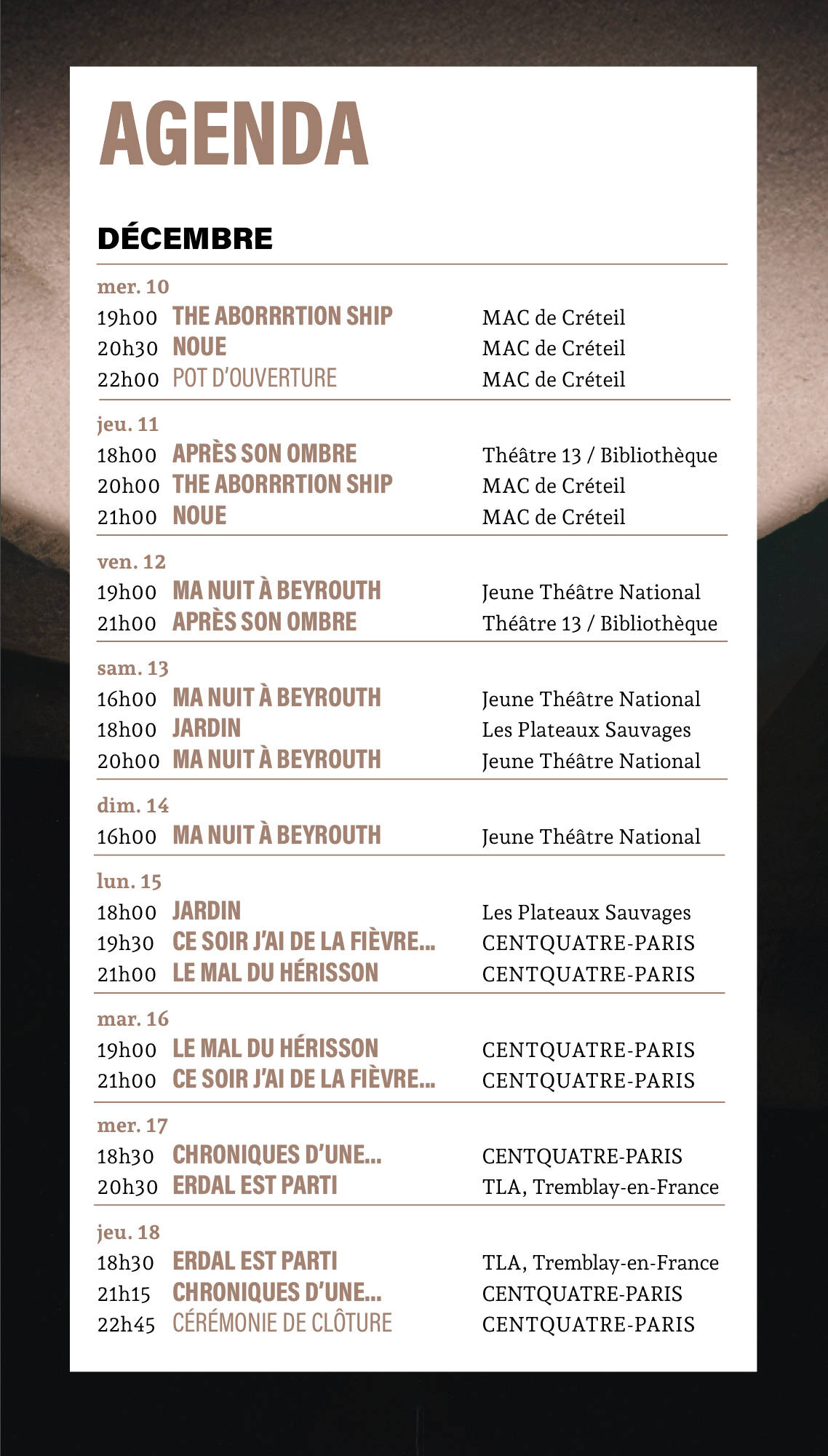 mer. 10 déc. à 22h00 : Pot d'ouverture à la MAC de Créteil